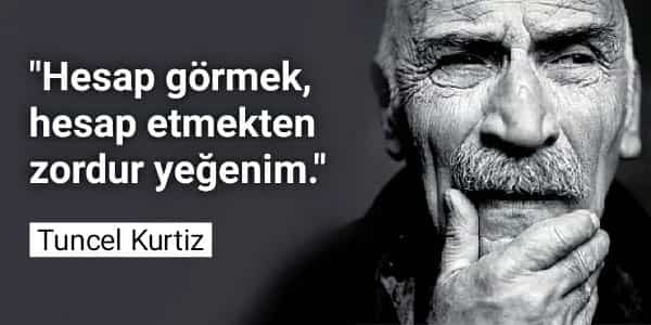 “Çözemedim bazılarını;Uzaktan mı adamlar,adamlıktan mı uzaklar?!””Hesab görmek, hesap etmekten zordur yeğenim.” Tuncel Kurtiz