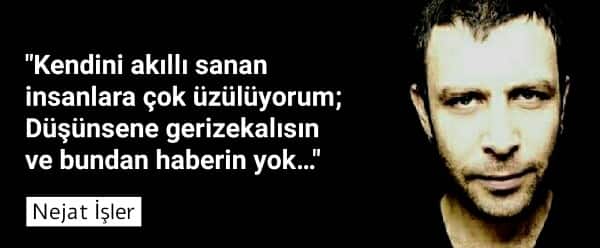 “Bu alemde kahbelere yer yok dediler en güzel yeri de onlara verdiler!Bizi çıkmaz sokağa sokup yolun açık olsun dediler!Sana diyeceğim şudur küçüğüm;büyüme hayat seni de harcar!””İyi insanlara salak muamelesi yapmayı bıraktığın an iyi insan olacaksın,bu da sana yeter. ” Nejat İşler